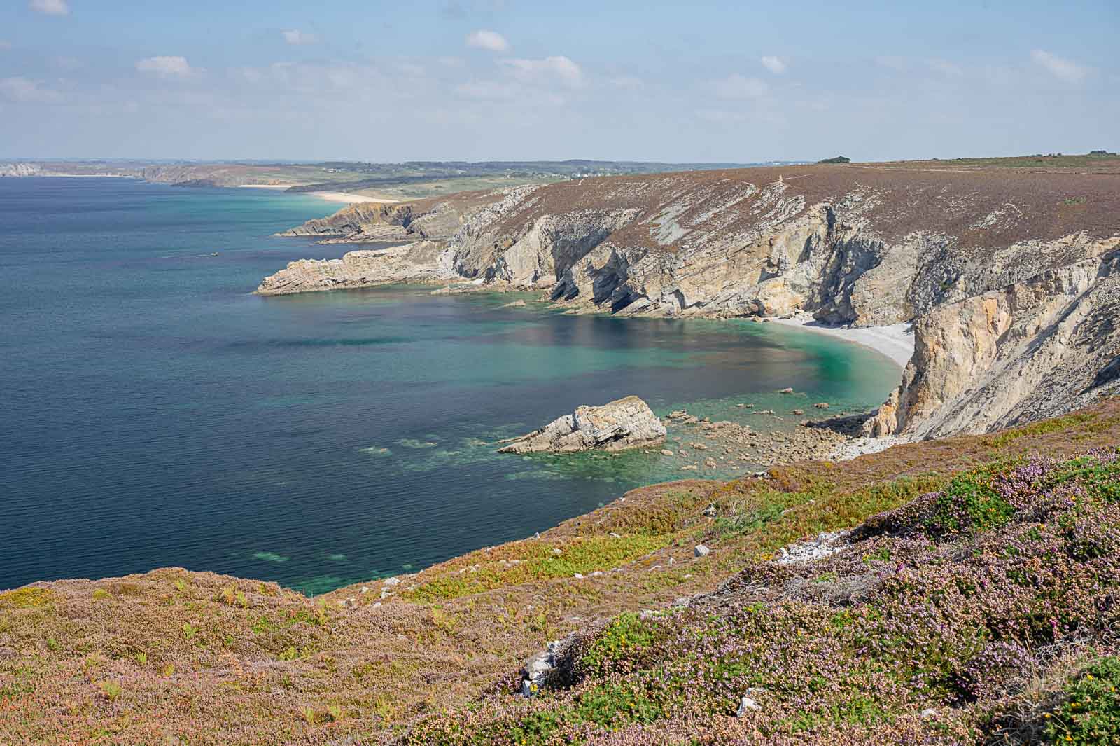 Eine besonders schönen Küstenabschnitt findet ihr vom Plage de La Fosse bis Cap Frehel. Hier führt der GR34 mit teilweise schmalen Pfaden durch violettes und gelbes Heidekraut. Ausgehend von Cap Frehel geht der Zöllnerpfad dann weiter bis zu Fort la Latte. Dieser Abschnitt ist uns besonders touristisch in Erinnerung geblieben. Wir haben uns für eine Rundwanderung entschieden, die uns ausgehend von Plage de La Fosse über Cap Frehel und Fort la Latte über das Landesinnere wieder zum Ausgangspunkt gebracht hat.