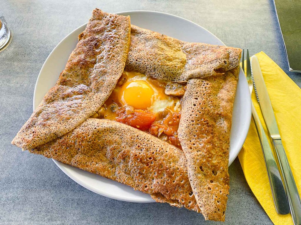 Crêpes & Galettes – Süß oder herzhaft? Während die aus Weizenmehl zubereiteten Crêpes süß daherkommen (z.B. Schokolade, Früchte und Karamellsauce) werden die herzhaften Galettes aus Buchweizenmehl hergestellt und z.B. mit Schinken, Käse und Ei serviert