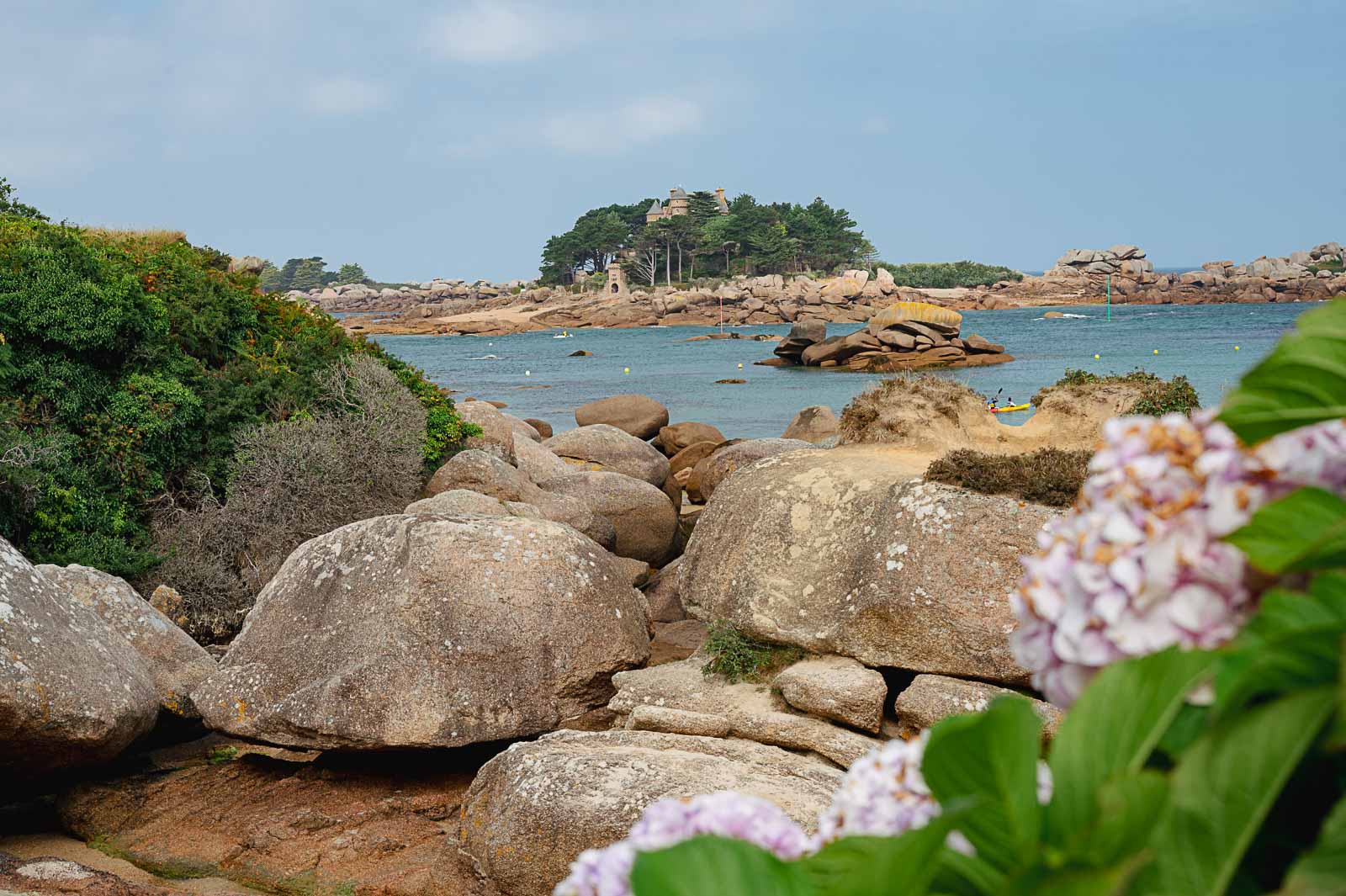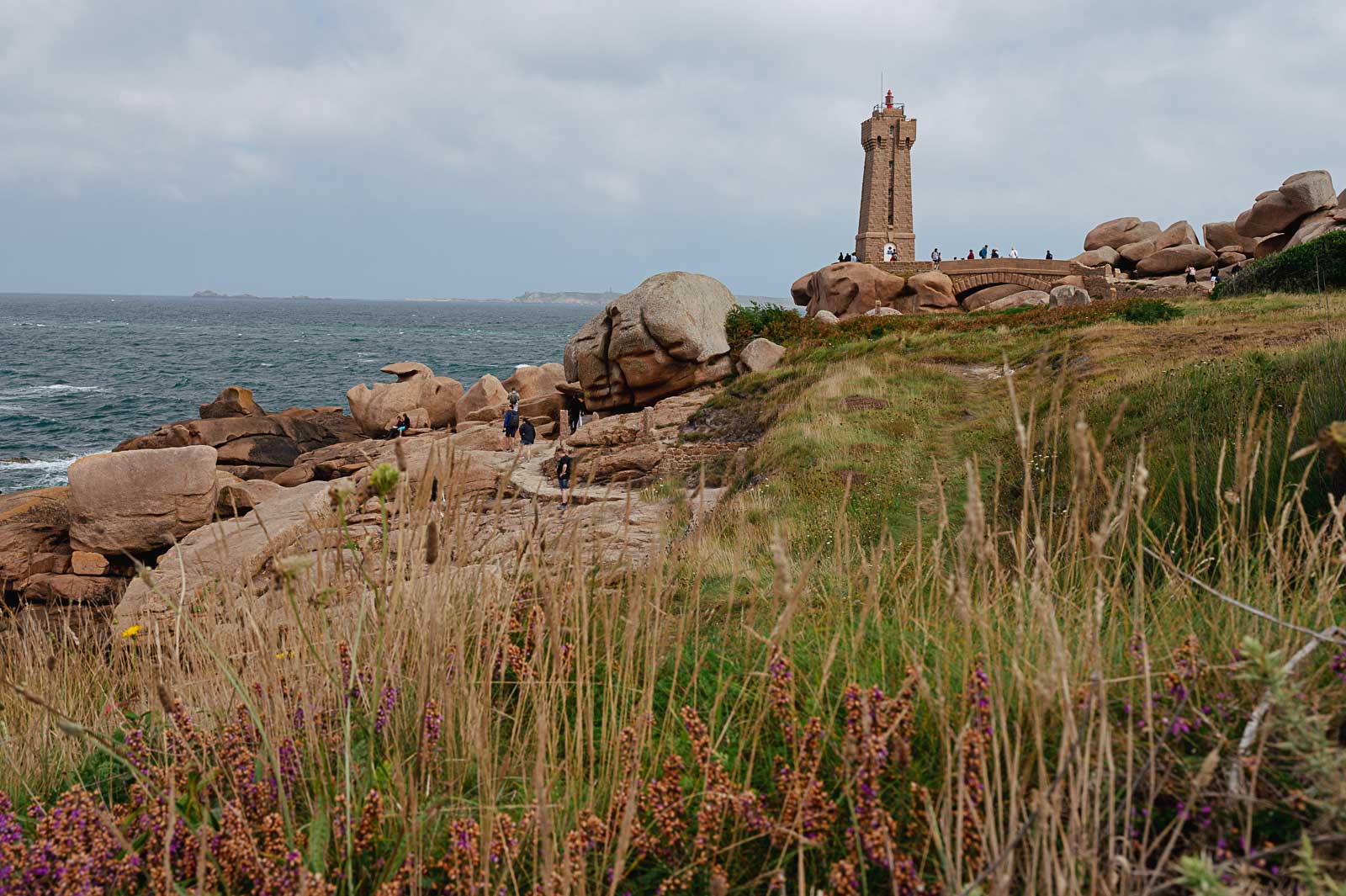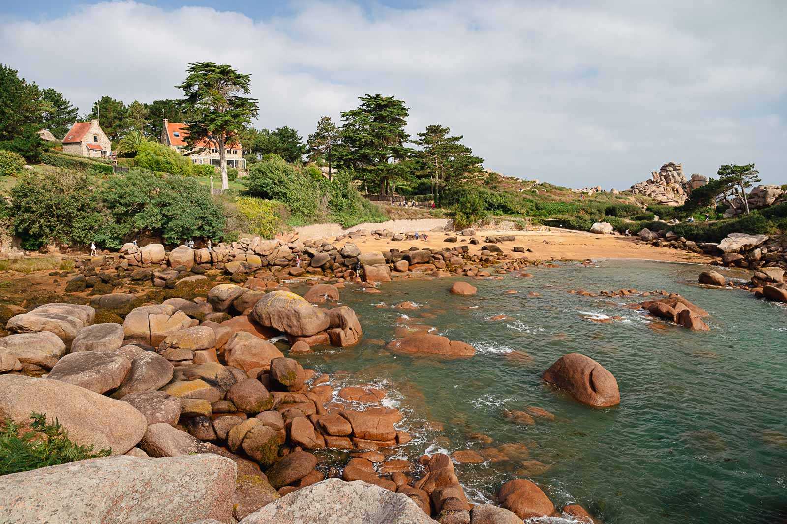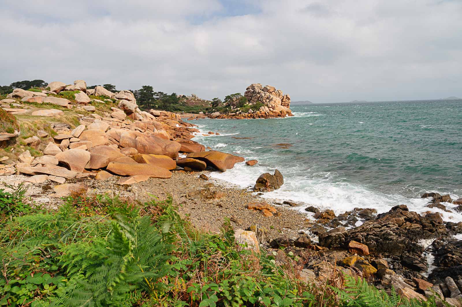 Im Vergleich zu den mit Heidekraut bewachsenen Regionen, bildet der rötliche Granit dieses Abschnittes einen besonderen Kontrast. Auch hier ist eine Küstenwanderung auf dem GR34 fast ein Muss. Aufgrund zahlreicher Touristen kann es in gewissen Bereichen etwas Gedränge gegeben. Ausgehend von einem öffentlichen Parkplatz (Ecke Bd Thalassa und Av. du Casino) in der Nähe des Plage de Trestraou in Perros-Guirec spazierten wir bis zum Port de Ploumanac’h. Es besteht auch die Möglichkeit an den „Hotspots“ zu parken, aber erst durch das Entlangwandern kann man die schöne Côte de Granit Rose richtig auf sich wirken lassen.