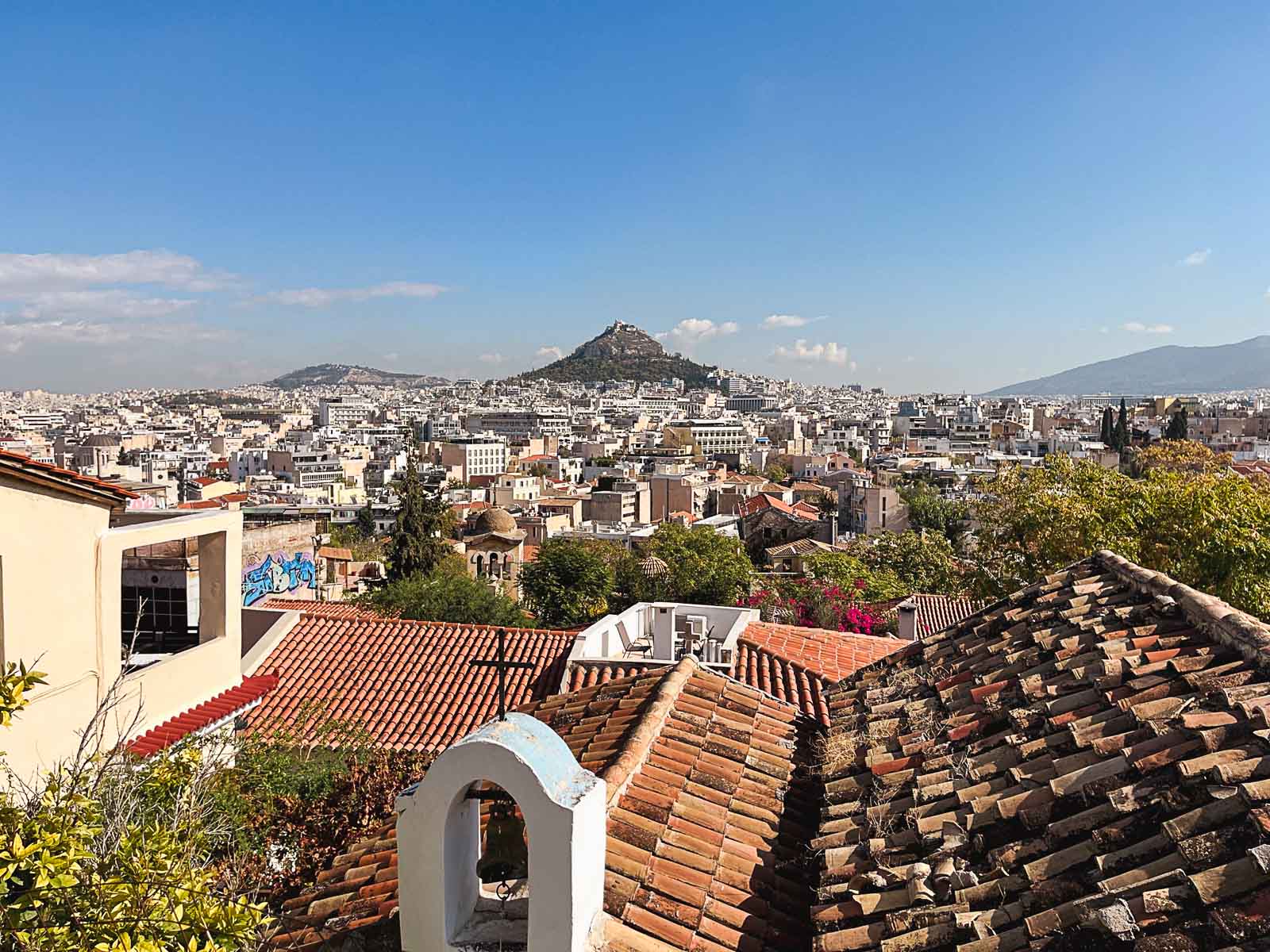 Bei unserer Recherche sind wir auf mehrere Empfehlungen gestoßen auf den Lykabettus Hügel zu wandern, um dann die wundervolle Aussicht auf Athen zu genießen. Tatsächlich haben wir den Weg zum und auf den Hügel spannender empfunden als die Aussicht selbst: Nicht zuletzt wegen den zahlreichen Touristen die sich auf engem Raum an der Spitze des Hügels zusammenfinden.